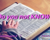 Today's readings... (1 Kings 20), ( Jeremiah 47), (1 Corinthians 6) Four times the above phrase is used by Paul in our chapter (6) of 1st Corinthians today. Many believers there were spiritually blind