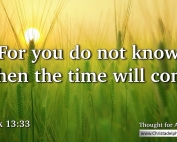 Thought for August 18th. “YOU DO NOT KNOW WHEN THE TIME WILL COME”